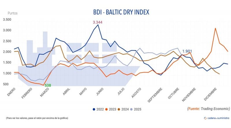 El Baltic Dry Index registra una fuerte caída de casi un 16%