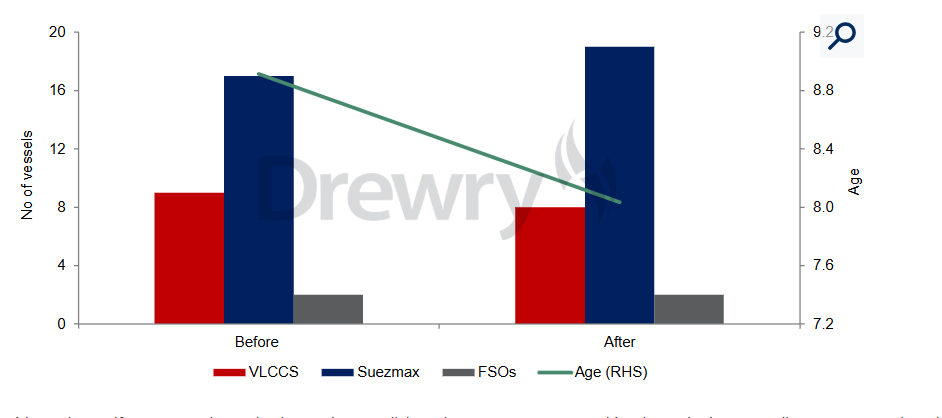 Prevemos que la renovación de la flota será un tema recurrente para las compañías petroleras en el futuro. Los precios de segunda mano razonablemente sólidos facilitan la decisión desde la perspectiva de la asignación de capital. Una flota más joven también debería traducirse en mayores ganancias para las compañías petroleras, siempre que se mantenga la fortaleza de las tarifas de los buques tanque.