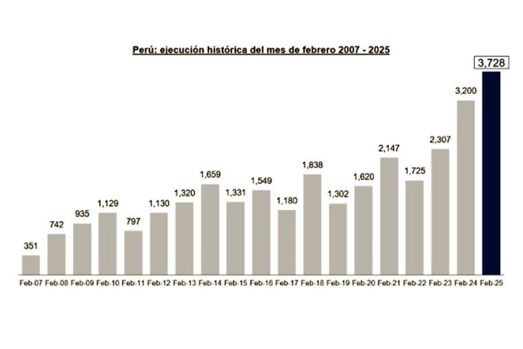 Solo en febrero se alcanzó una ejecución de 3,728 millones de soles, un récord histórico para este mes.